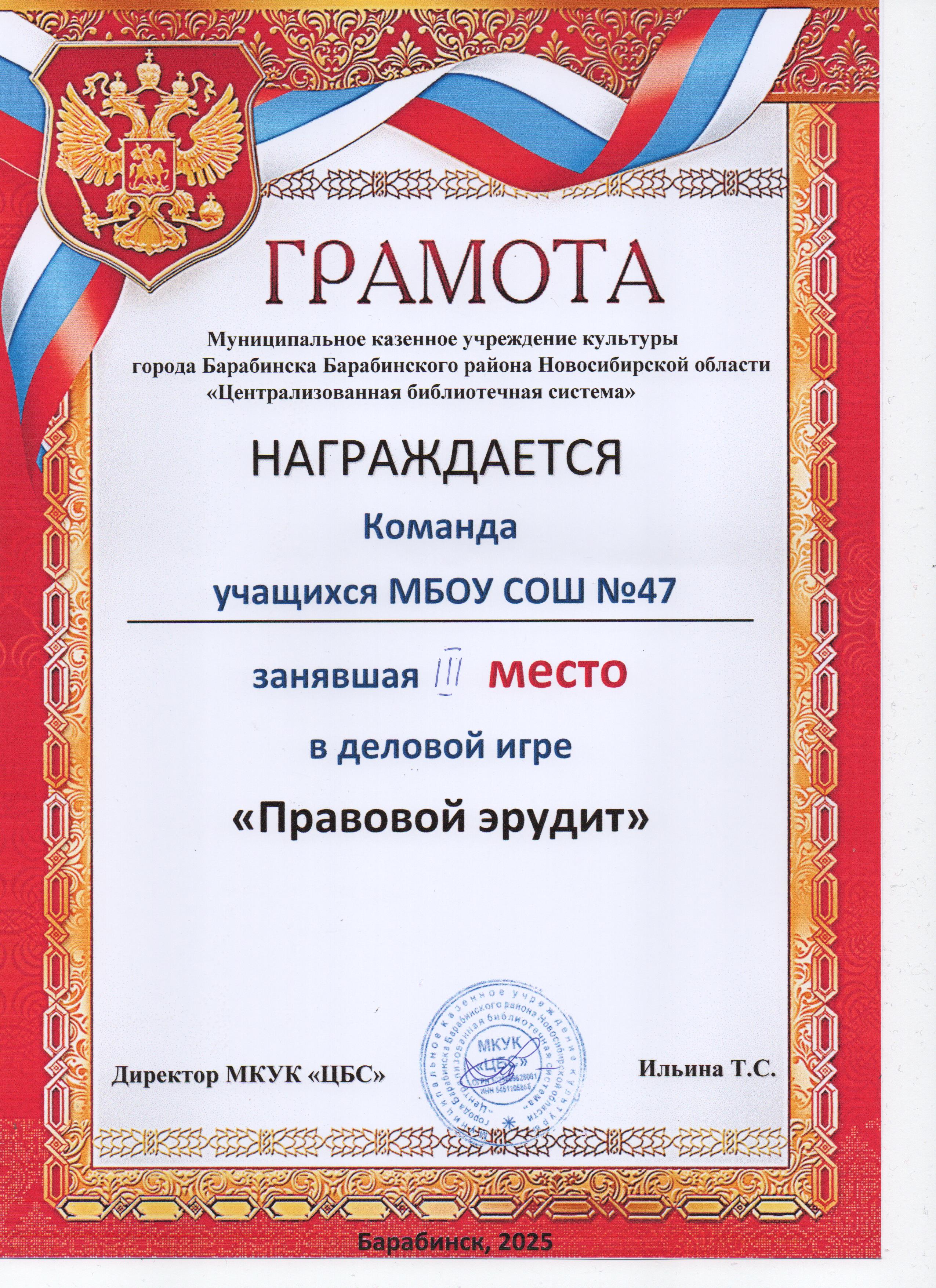 Муниципальное бюджетное общеобразовательное учреждение средняя общеобразовательная школа №47 Барабинского района Новосибирской области